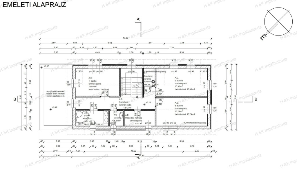 Az ingatlan belső kialakítása a funkcionalitás és a kényelmes élettér biztosítását szolgálja.