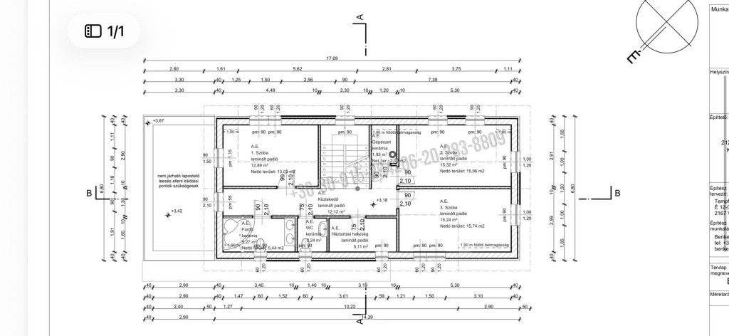 Összes nettó alapterület: 168,88 m2