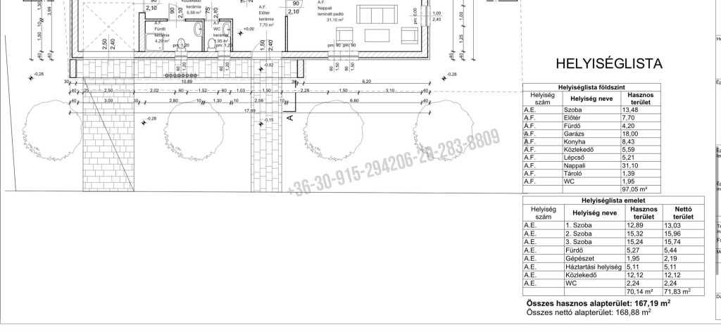 Összes hasznos alapterület: 167,19 m2