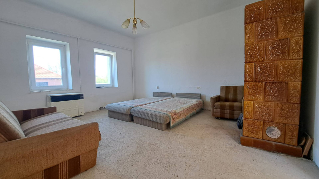 A fűtésről cserépkályha és gázkonvektor gondoskodik, a ház pedig teljesen közművesített.