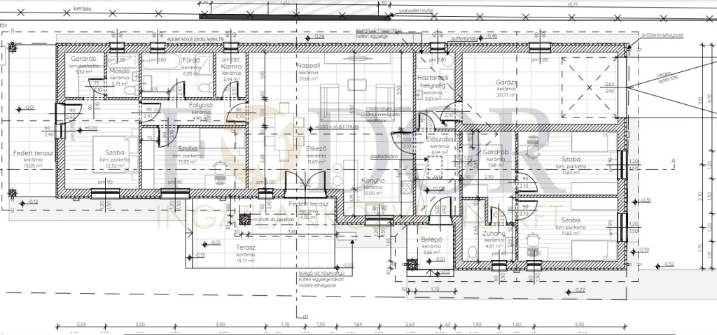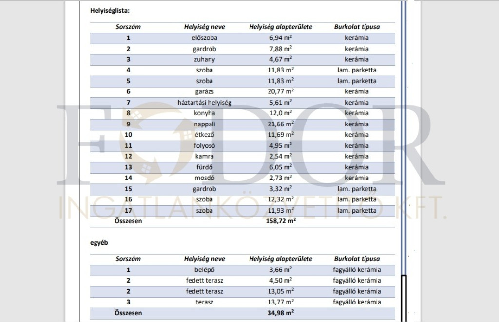 158,72 m² összterület (138 m² lakótér + 20,77 m² garázs)