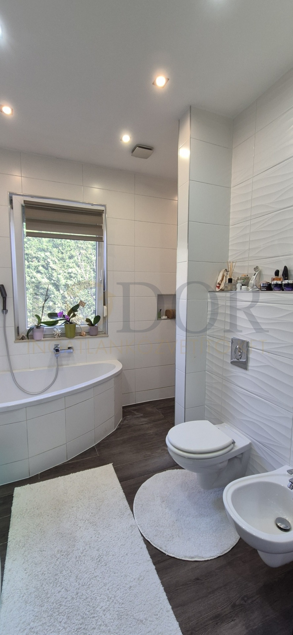 A 30 cm-es Porotherm téglából épült, 8 cm-es szigeteléssel ellátott otthon energiatudatos megoldásokat kínál. A korszerű, 2025 novemberében cserélt 24 kW-os Ariston gázcirkó kazán padlófűtéssel és radiátoros hőleadással biztosítja az optimális hőérzetet, míg a nyári hónapokban két klímaberendezés gondoskodik a kellemes hűvösről.