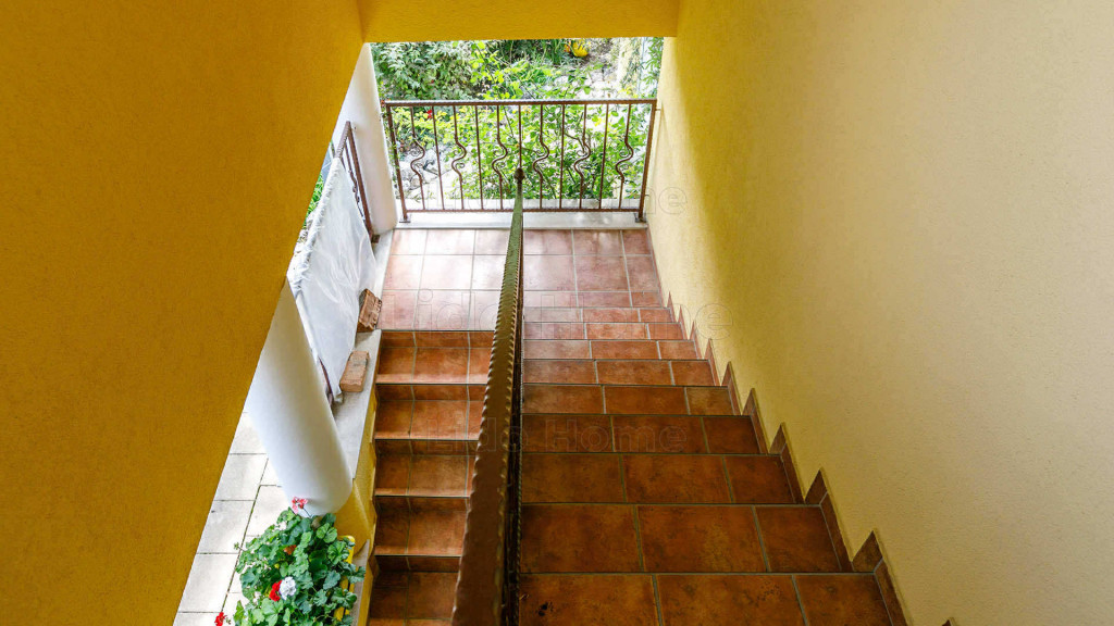A felső szint külső lépcsőházból közelíthető meg, mely külön bejárat segítségével akár le is zárható. Fent 1 hatalmas hálószoba, folyosó, fürdő, és egy tárolóhelység került kialakításra.