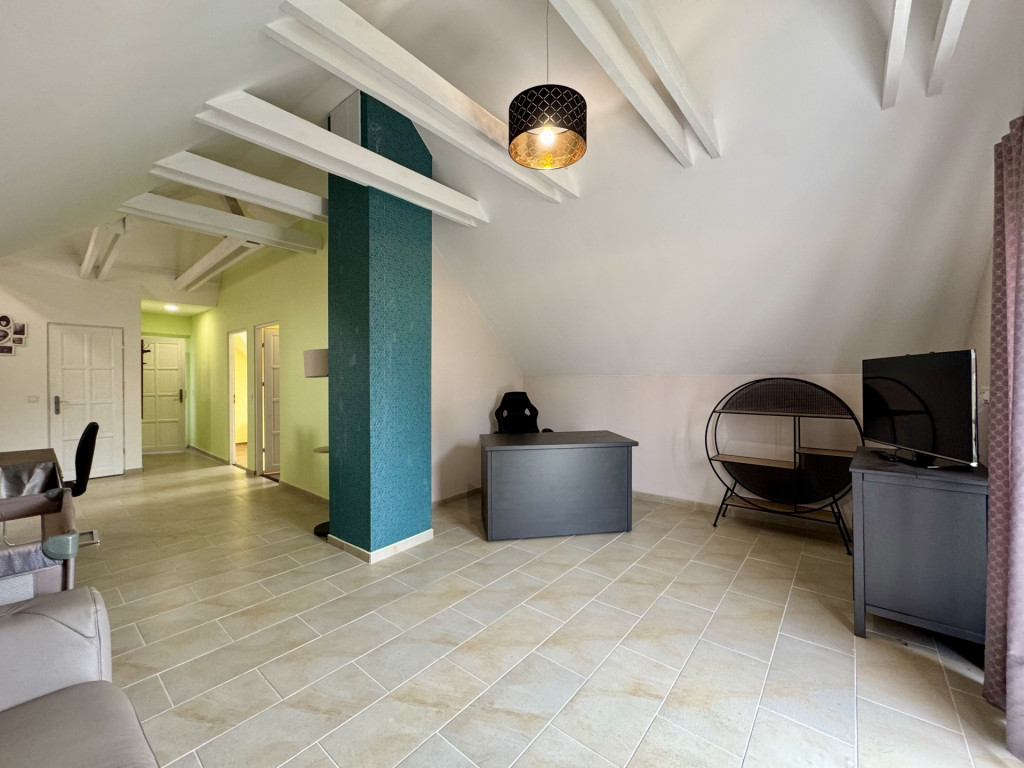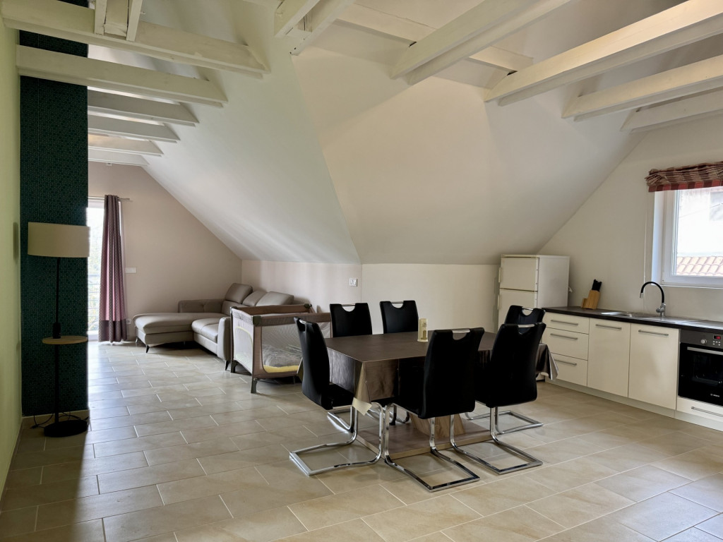 -Önálló lakrészként funkcionál nappalival, konyhával, étkezővel, két további szobával, fürdővel és erkéllyel.