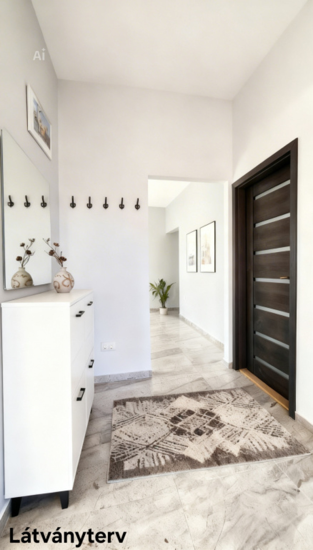 - A nappaliból nyíló közlekedőben beépített gardróbszekrény kialakítására is van lehetőség