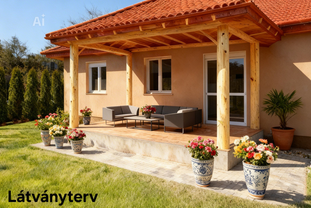- 18 nm-es terasz, amely hamarosan fa szerkezetű tetővel fedett terasszá válik