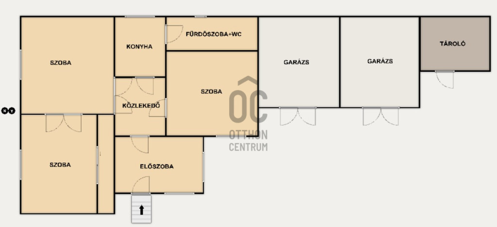 - nappali plusz 3 szoba, konyha, fürdő wc-vel, előszoba, közlekedő, gardrób, 2 db garázs, tároló.