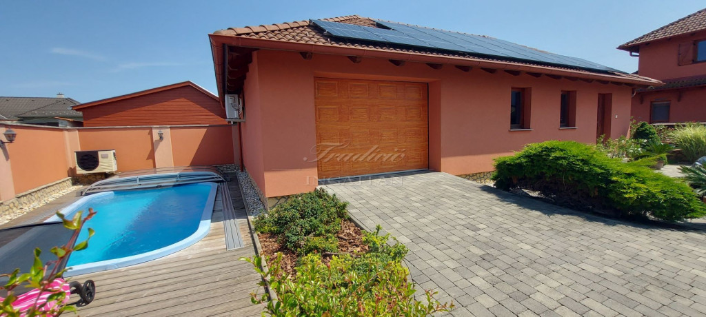 Diese Villa bietet einen exklusiven Lebensstil: elegantes, mediterranes Ambiente, moderne Energiesysteme, hochwertige Materialien, komfortable Innen- und Außenbereiche – und das alles in einer der verkehrsberuhigten Straßen von Gyirmót.