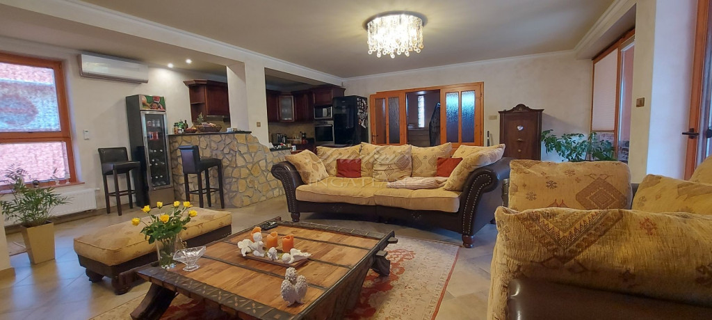 Az 1092 m²-es széles utcafrontú telken álló mediterrán stílusú villa minden részletében a kényelmet, a tartósságot és a kifinomult ízlést szolgálja. A 196 m²-es sajátos belső enteriőrrel rendelkező lakótér tágas és világos, melyet a felhasznált anyagok és a legmodernebb technológia tesz időtállóvá.