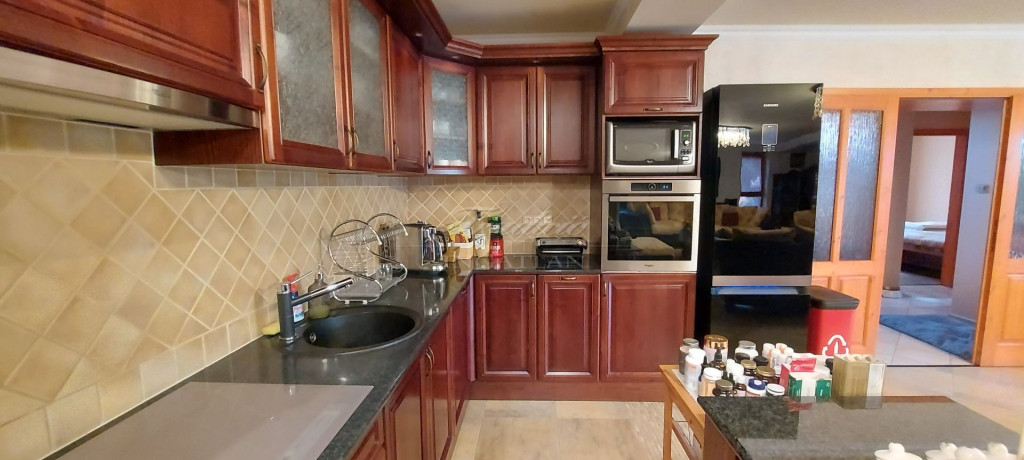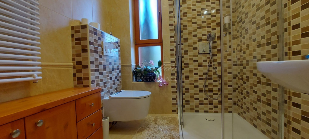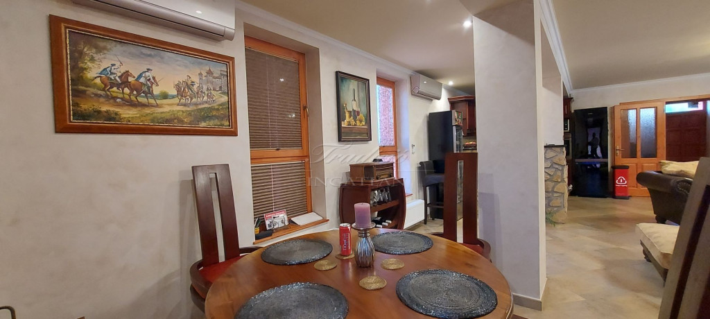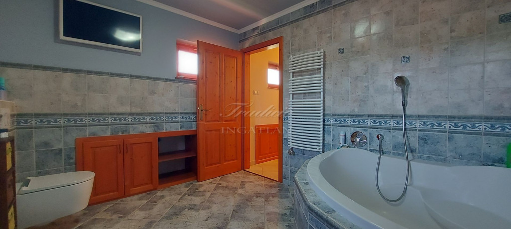 A gépesített, tömörfa konyha a ház egyik ékköve, amely minőségi berendezésekkel és praktikus elrendezéssel teszi teljessé a kényelmet.