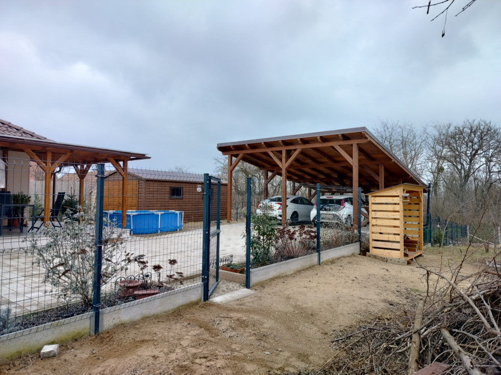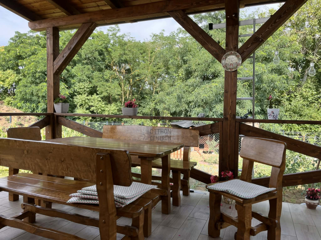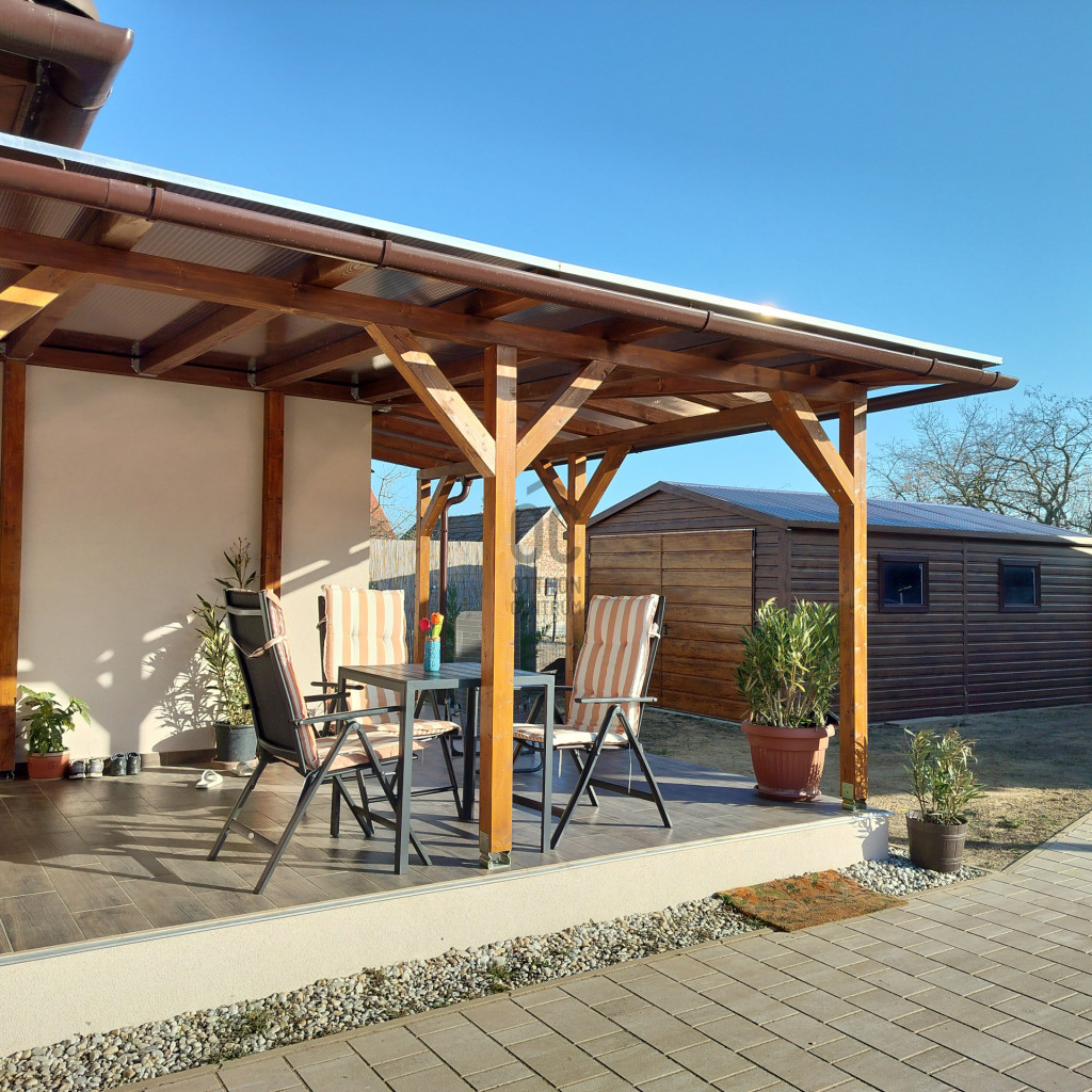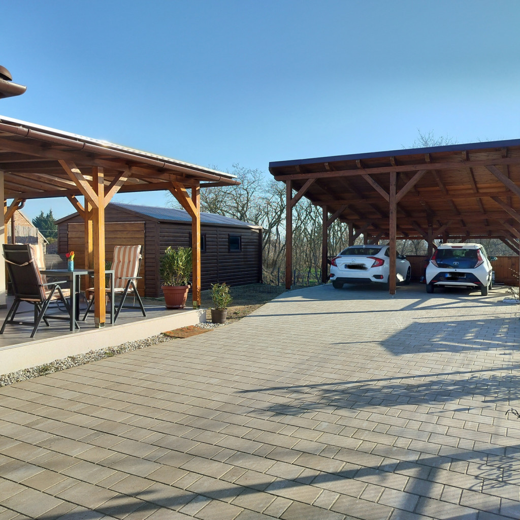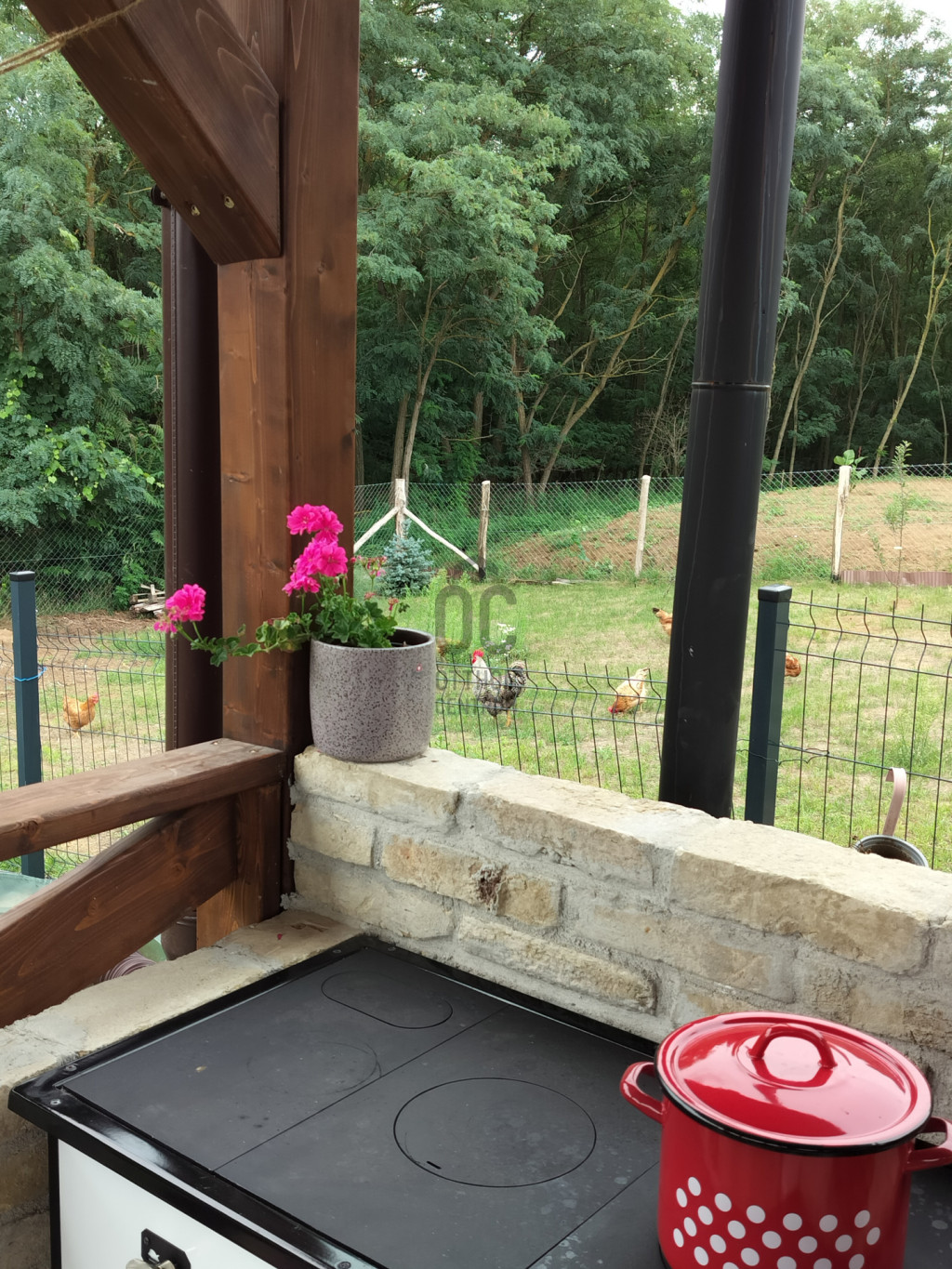 20 m²-es gyönyörű faszerkezetű nyári konyha (áram kivezetve).