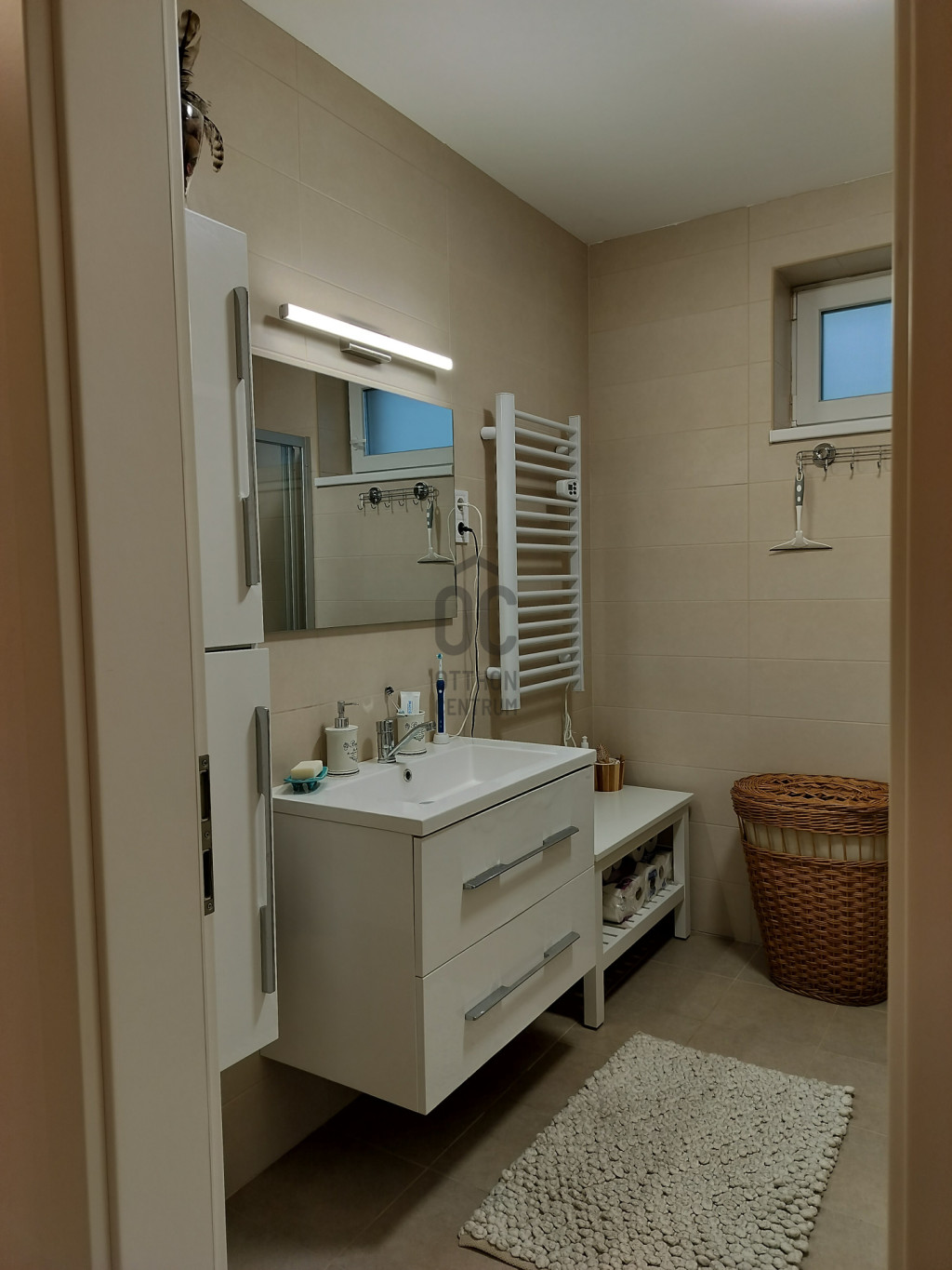 A nappaliból és az egyik hálószobából egy hangulatos, 24 m²-es fedett teraszra léphetünk ki.