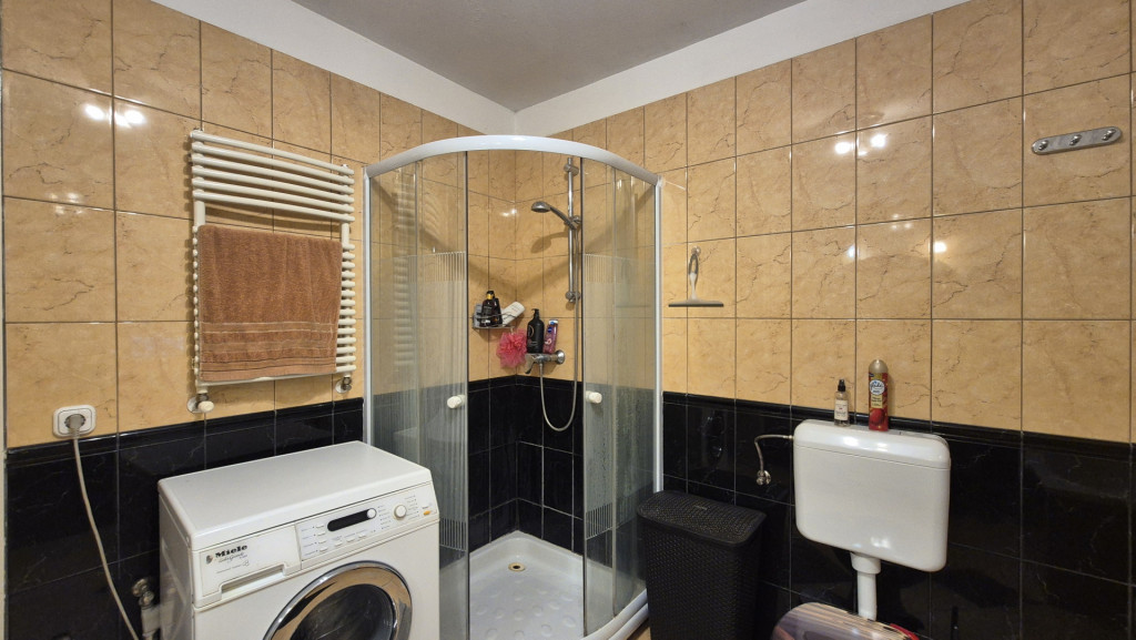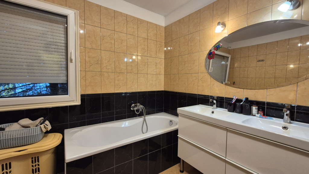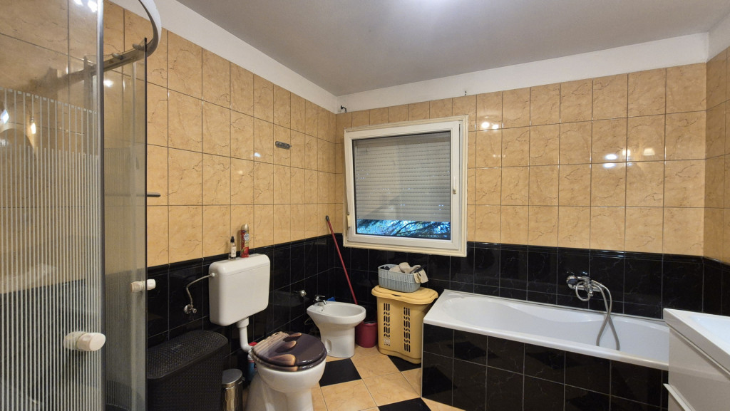 Fürdőben: kád, zuhanyzó, WC, bidé, törölközőszárítós radiátor, ablak