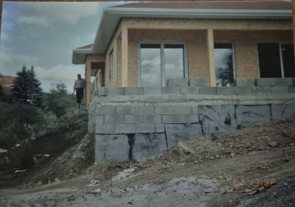 Lásd a képek között hogyan készült az alap és a felépítmény (fa, könnyűszerkezetes ház), bombabiztos alapokra