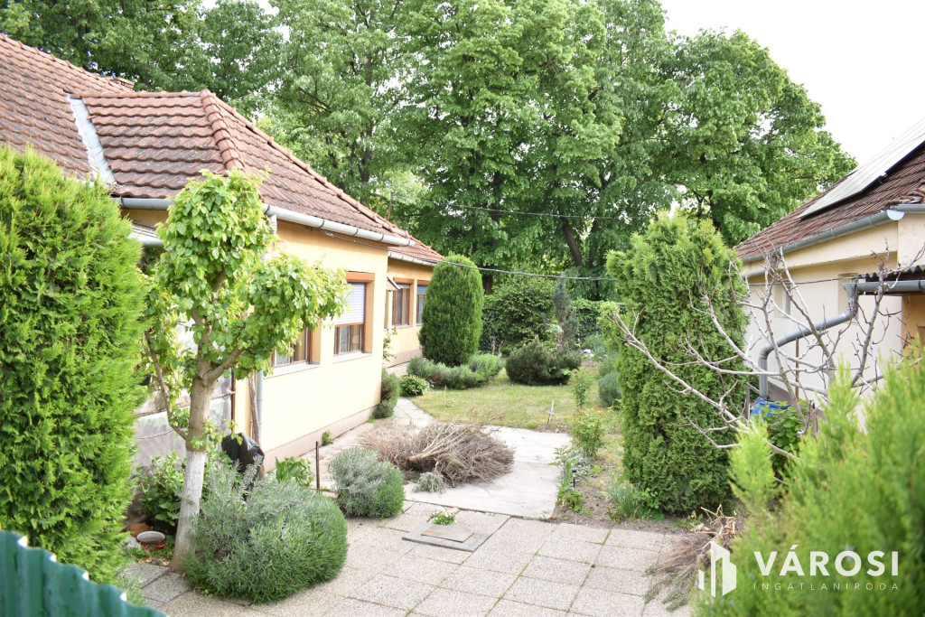 Az ingatlanhoz tartozik egy 700 m2-es teljesen körbekerített udvar is, ahol egy tágas melléképület található. A kert parkosítása is megtörtént, ahol egy hangulatos fedett terasz is ki lett alakítva.