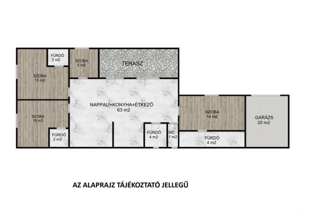 Minden szoba saját fürdőszobával rendelkezik, így a reggeli készülődés zavartalan lesz a család minden tagjának.