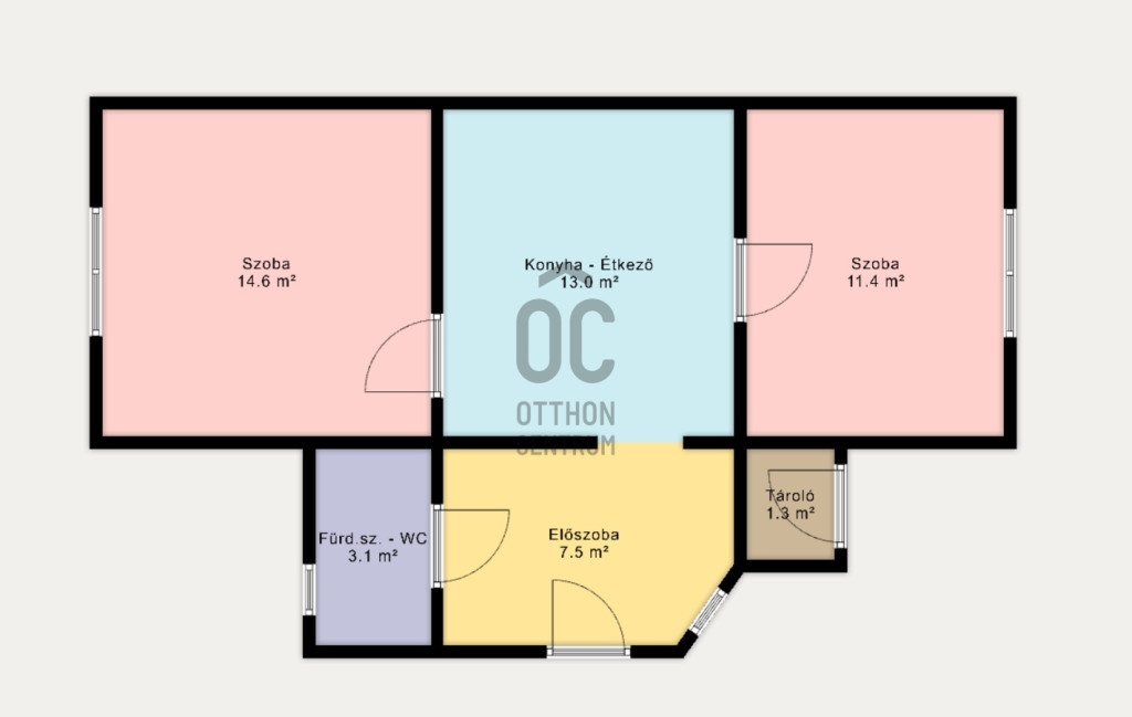 - Helyiségek: 2 szoba, étkező-konyha, tágas előszoba, zuhanyzós fürdőszoba