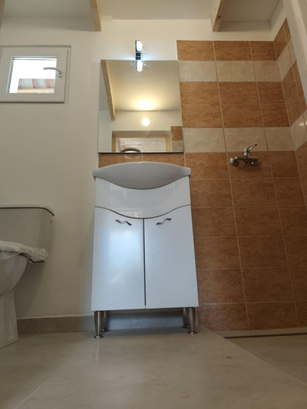 - a fürdőszoba épített zuhanyzós, a WC is itt kapott helyet, a meleg vizet villanybojler biztosítja