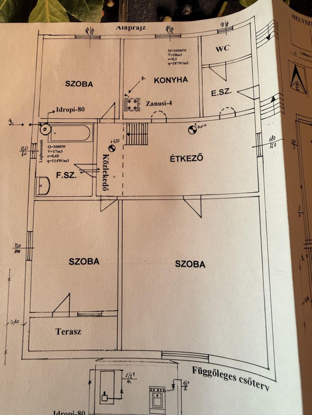 - 110 nm-es, elosztása: étkező konyha + 3 szoba tégla építésű,