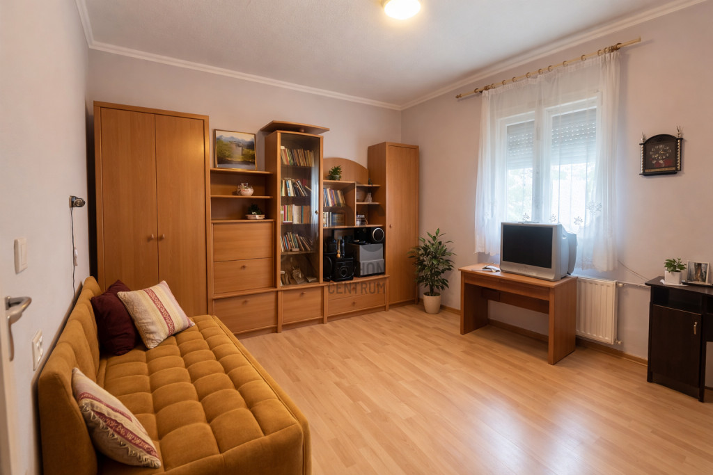 Csendes, kertvárosi környezetben eladó egy 95 nm alapterületű családi ház.Főbb jellemzők: