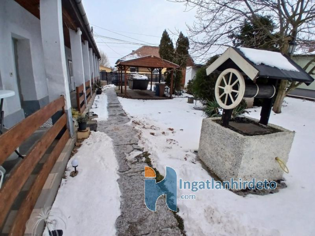 Elhelyezkedése: Belterület Tájolása: Dél-keleti tájolású Állapota: Használt - felújított Komfort besorolása: összkomfortos Építési éve: 1965 Alapterülete: 75 m2 Telekterülete: 4 400 m2 Szobák száma: 3szoba Felújított: Felújított Felújítás éve: 2026 Felújítás során elvégzett munkák: Festés, Tapétázás, Csempe csere, Járólap csere, Parketta csere, Belső átépítés, Utólagos vízszigetelés Közművek: Gáz, Víz, Villany, Csatorna Gázellátás: Vezetékes Vízellátás: Vezetékes víz Áramellátás: 230V Fűtés módja: Gáz Fűtés típusa: Konvektoros Homlokzat állapot: átlagos Építési mód: Vályog, Vegyes falazat Tető formája: Magas Tető anyaga: Cserép Parkolási lehetőség: Garázsban, Utcán, Telken Kilátás: Utcafronti kilátás, Udvari kilátás Napelem: Nincs Jellemzői: Alacsony rezsi, Csendes környék, Jó közlekedés, Két bejárat, Étkező, Udvari terasz, Beépített szekrény, Beépített konyhabútor, Autóbeálló, Kert, Kerítés, Saját fúrt kút, Zöldterület, Jó közbiztonság Energetikai besorolás: Nincs adat Egyéb jellemzők: Terasz, Melléképület Tv, Internet: Kábeltévé, Internet, Vezetékes telefon Közelben: Iskola, Óvoda, Vasútállomás, Autóbuszállomás, Helyi autóbuszállomás, Orvosi rendelő, Bolt, Gyógyszertár, Postahivatal, Vendéglátó egység, Autópálya Rezsi költség(Ft): 40000 Terhelések: Tehermentes ingatlan Eladásra vonatkozó információk: Az ár tartalmazza a teljes berendezést, Azonnal beköltözhető
