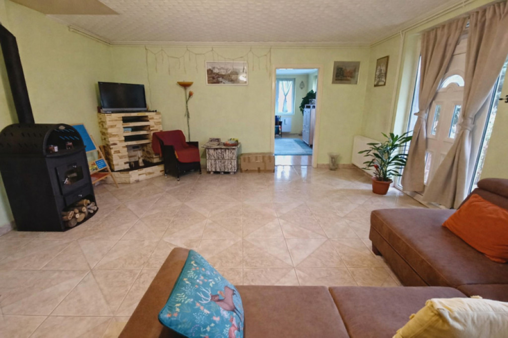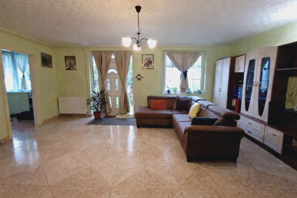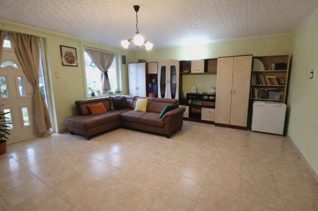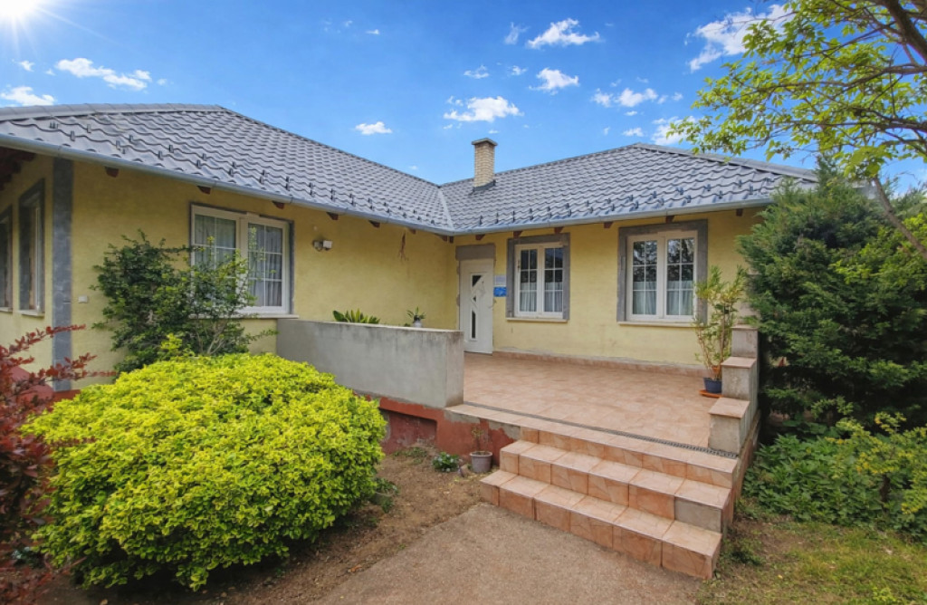 A telek első részén elhelyezkedő főépület 82 m² hasznos alapterületű, melyet egy 21 m²-es hangulatos terasz egészít ki. Az ingatlan beton alapra, Ytong téglából épült, műanyag nyílászárókkal felszerelt. Otthonának melegéről és a melegvíz ellátásról egy 2020-ban beépített Vaillant turbó cirkó kazán gondoskodik. Az elmúlt években az ingatlan több jelentős korszerűsítésen is átesett: a tető új, elegáns antracit szürke cserepeslemez fedést kapott, emellett 10 cm üveggyapot mennyezetszigetelés is kialakításra került a jobb energiahatékonyság érdekében. Ekkor készült el a teljes körű ereszcsatorna-rendszer, valamint a terasz teljes újjáépítése is. A fürdőszoba szintén teljes felújításon esett át, mely során a vízvezetékek, burkolatok és csempék is megújultak. A ház egyik nagy előnye, hogy a tágas nappali/szoba kialakításának köszönhetően igény esetén könnyedén két külön fél szobává alakítható, így az alaprajz rugalmasan igazítható a család igényeihez.