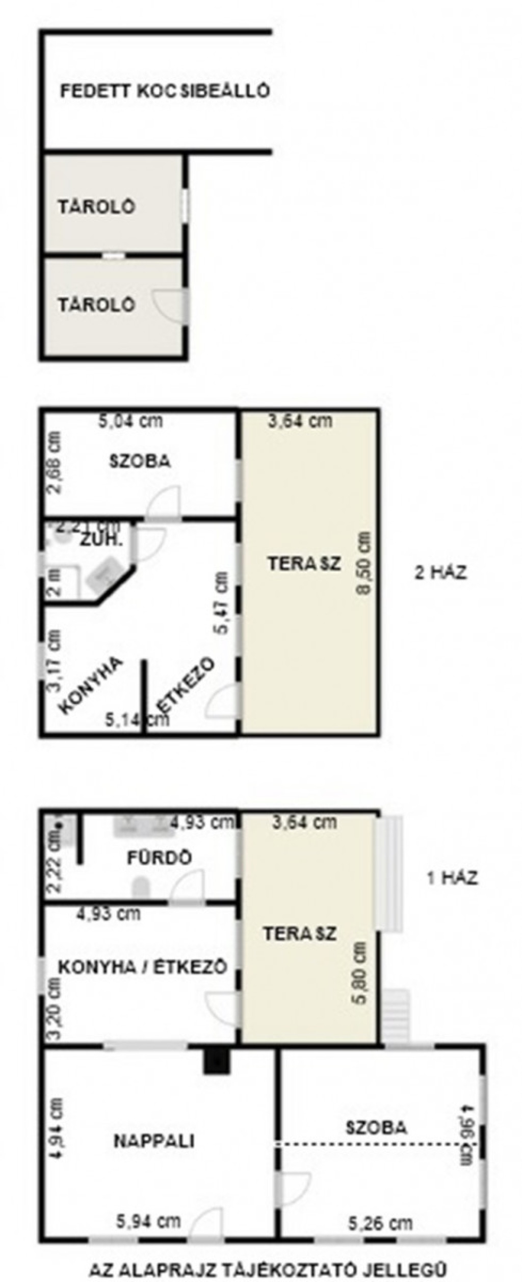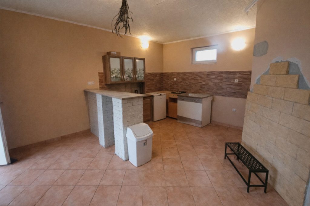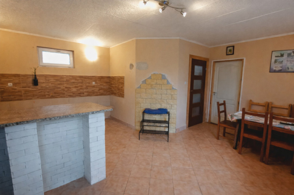 A telken található második, különálló ház 41 m² alapterületű, melyhez egy 30 m²-es saját teraszrész tartozik. Ez az épület szintén beton alapra, Ytong falazattal épült, műanyag nyílászárókkal ellátott. Tetőfedése zsindely, valamint teljes ereszcsatorna-rendszerrel rendelkezik. A közművek közül a víz és villany már bevezetésre került, fűtése kandallóval vagy akár hűtő-fűtő klímával is könnyedén megoldható, így vendégháznak, külön lakrésznek vagy akár kiadásra is tökéletes választás lehet.