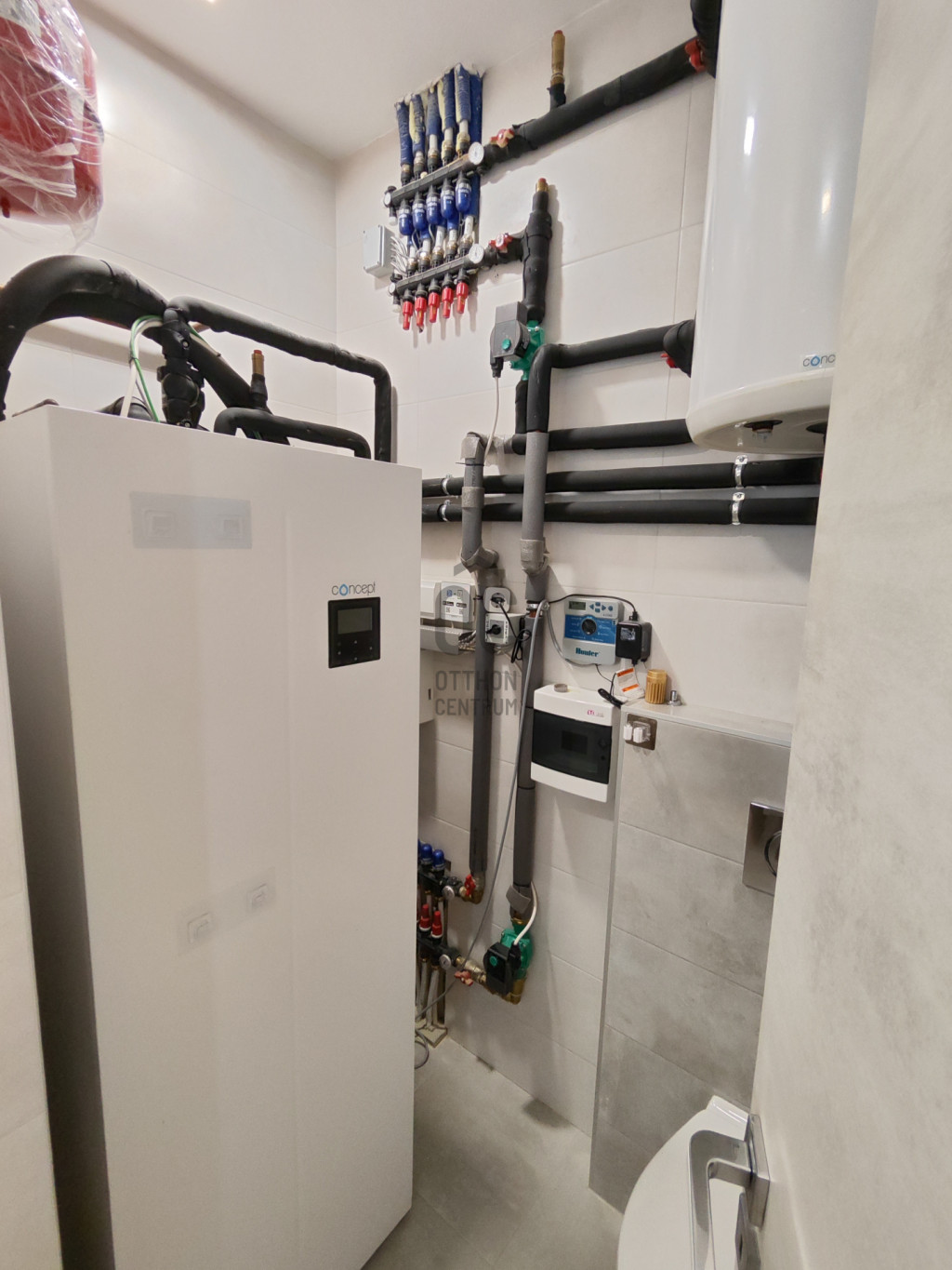 -hőszivattyús hűtés–fűtés minden helyiségben, külön szabályozással