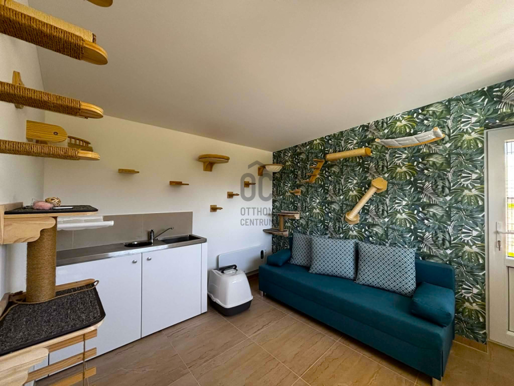 A telken belül található egy 88 nm-es melléképület, kerti konyha,fürdőszoba,műhely,garázs elosztással rendelkezik, de itt kapott helyet egy cica paradicsom is, mászófallal és kültéri kifutóval.
