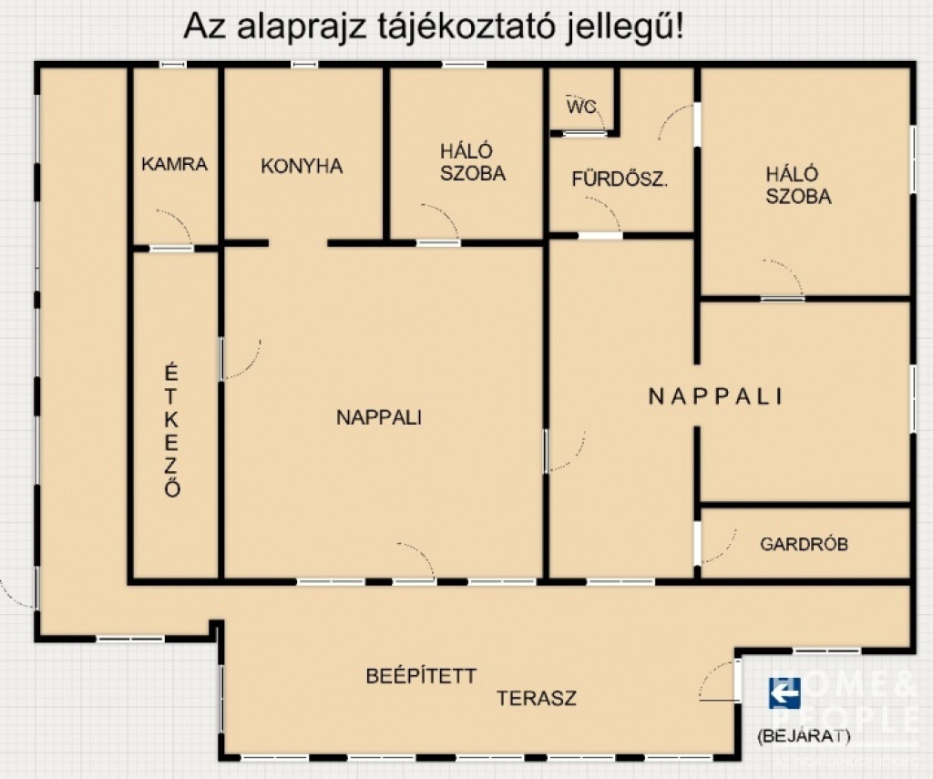 Nagy ház: 2 szoba, amerikai konyha, nappali, fürdőszoba, külön wc, folyosó