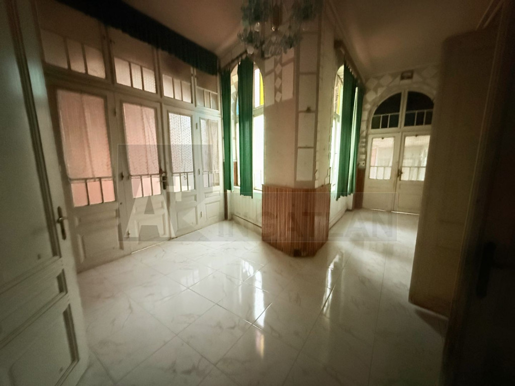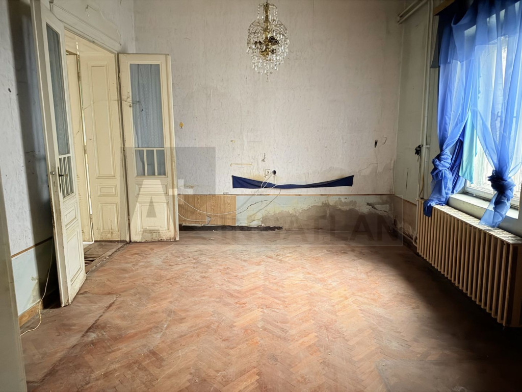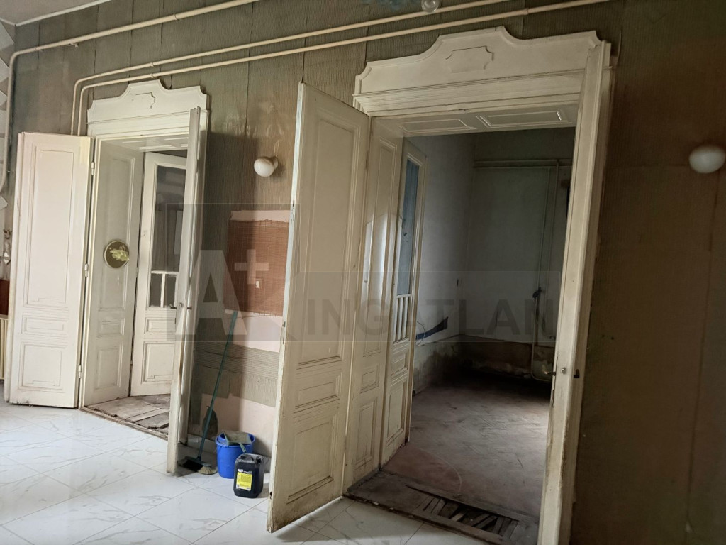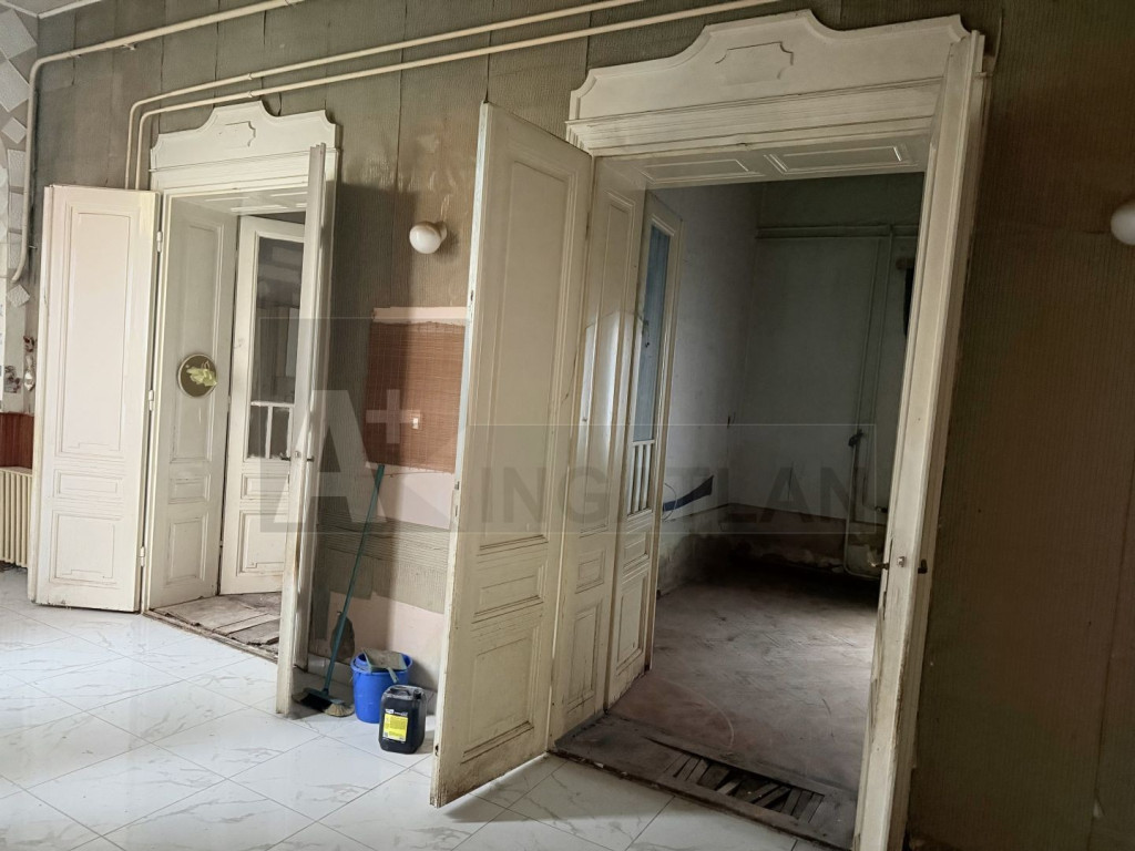 -fő épület polgári lakás : pár lécső felhaladva lépünk be a tágas , napfényes közlekedőbe , innen nyílik a három tágas szoba és a konyha, az eredeti, megőrzött állapotú, impozáns , dupla szárnyú , kazettás, stílusos fa ajtókkal és fürdőszoba, kamra ..