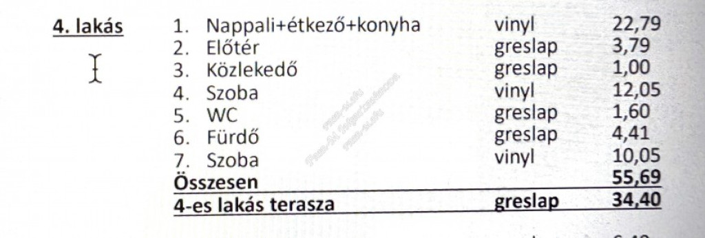 4. lakás 56 m2, 2 hálószoba és nappali, 34 m2 terasszal. Autóbeállóval. 56 millió Ft.