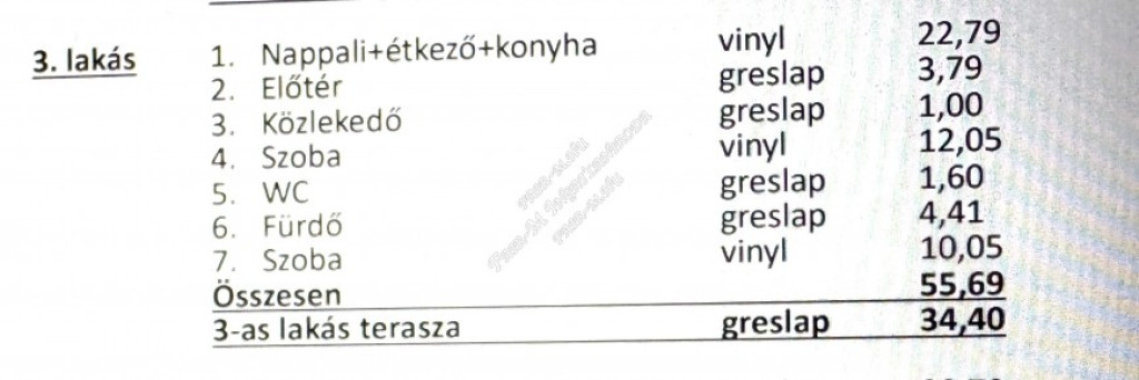 3. lakás 56 m2, 2 hálószoba és nappali, 34 m2 terasszal. Autóbeállóval. 56 millió Ft.