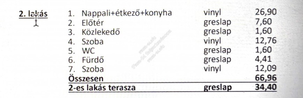 2. lakás 67 m2, 2 hálószoba és nappali, 34 m2 terasszal. Autóbeállóval. 67 millió Ft.