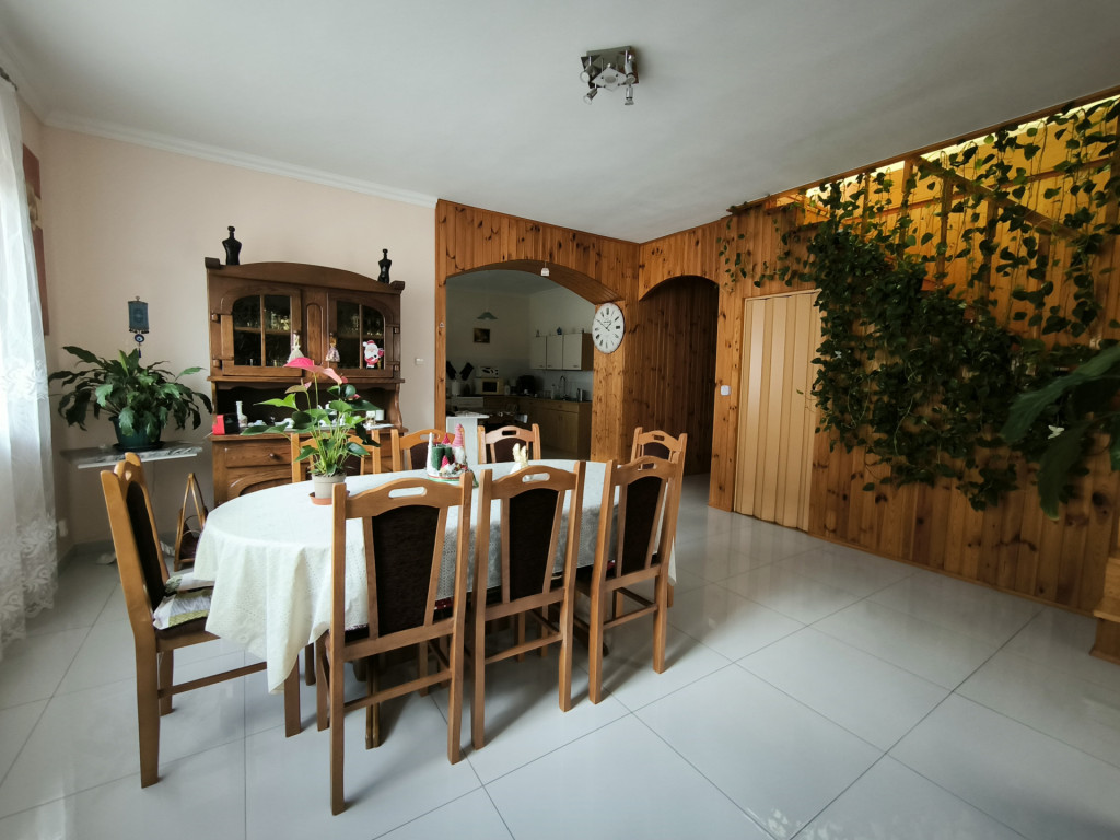 A földszinten nappali, étkező, konyha, kamra, fürdő, előszoba, és wc helyiségek találhatóak.