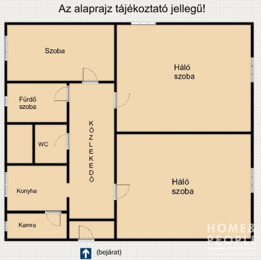 3 hálószoba, konyha, fürdőszoba, wc, közlekedő, szélfogó, kamra