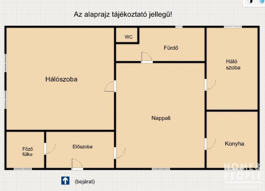 2 hálószoba, nappali, konyha, fürdőszoba, wc, közlekedő, kamra