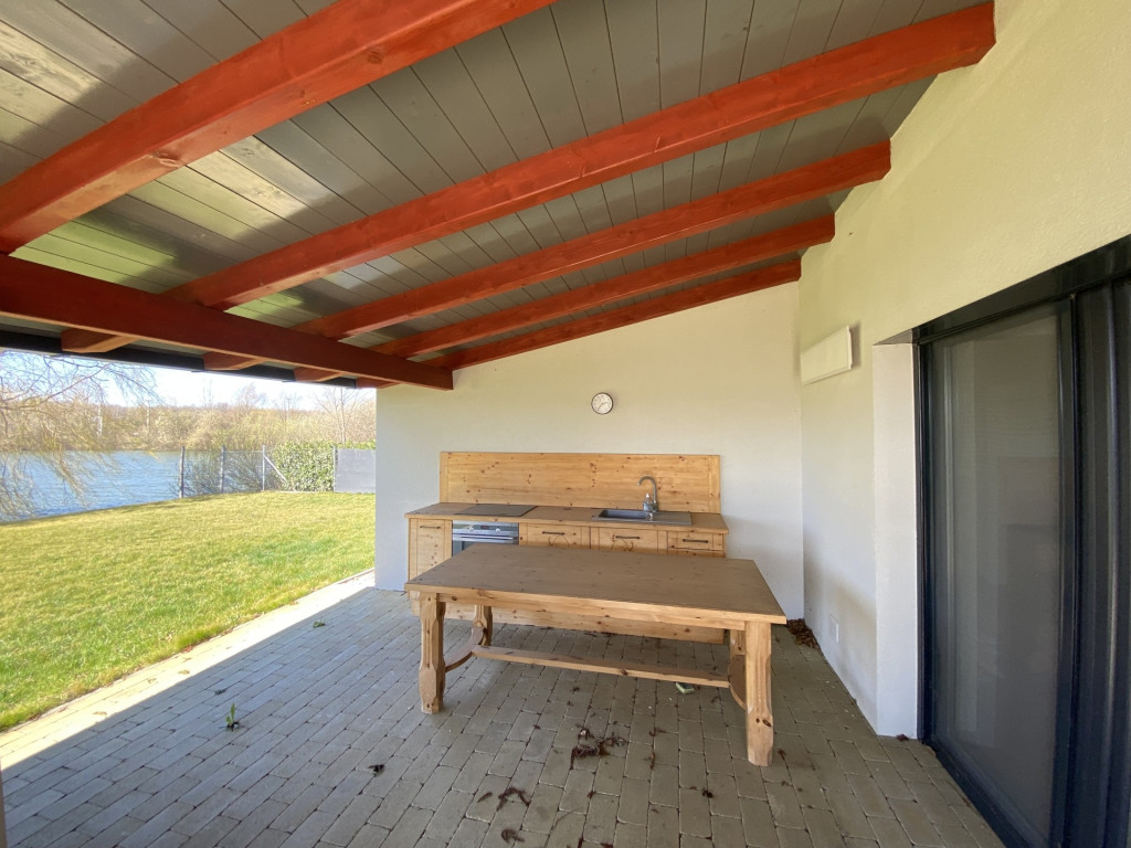 A gondozott kert öntözőrendszerrel ellátott, amely fúrt kútról működik, biztosítva a folyamatos vízellátást. A teraszon kialakított nyári konyha és a jakuzzi ideális helyszínt teremt a nyári kikapcsolódáshoz és feltöltődéshez.