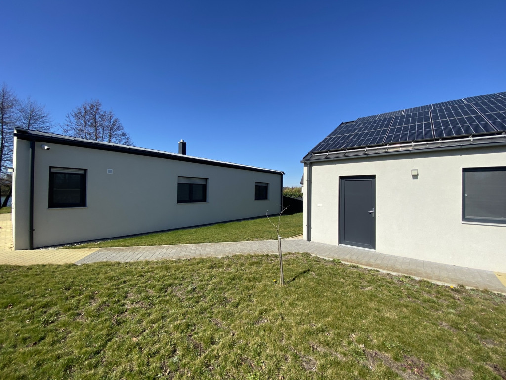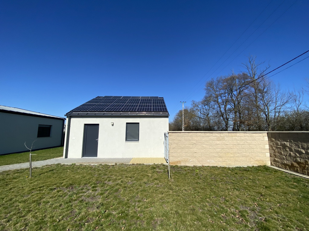 A ház korszerű műszaki megoldásokkal felszerelt: fűtését hőszivattyú biztosítja, amelyet egy 6 kW-os napelem rendszer egészít ki, így az energiahatékonyság és az alacsony fenntartási költségek garantáltak.
