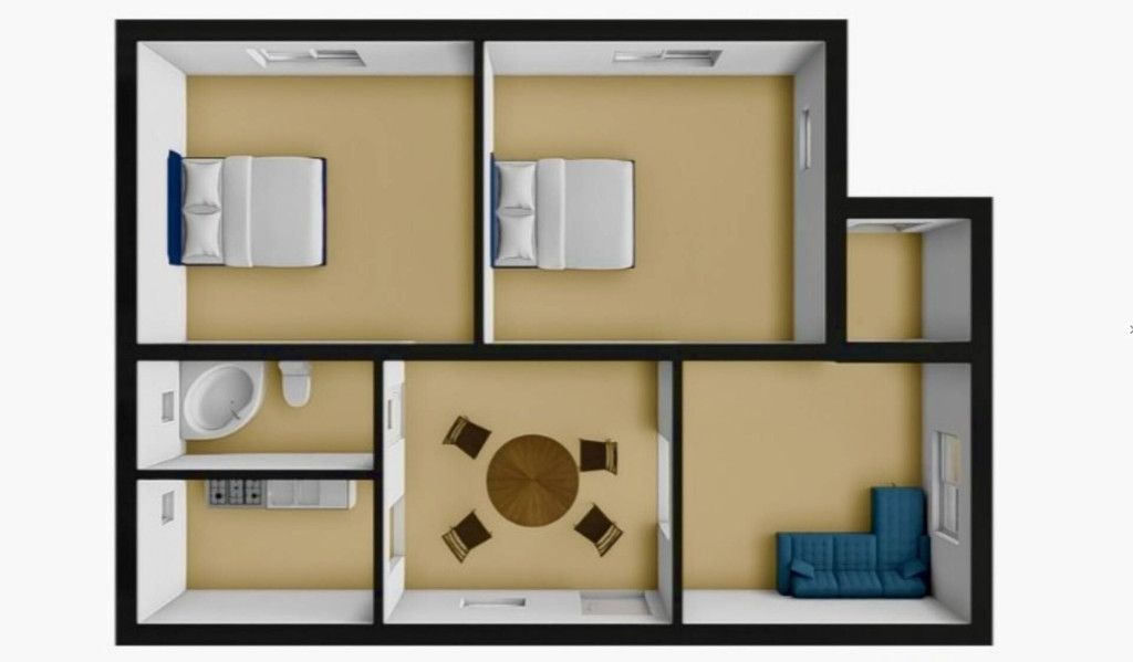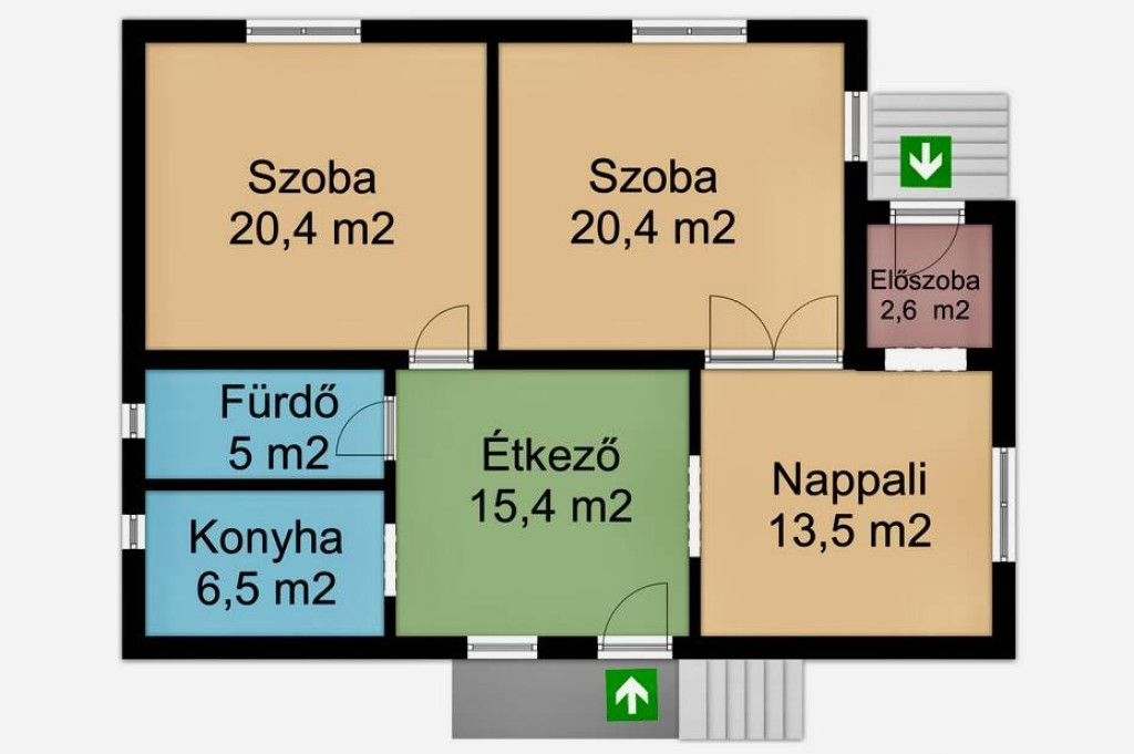 ✔︎ Lakótér: 2 utcai hálószoba, nappali, étkező, előszoba, konyha, fürdőszoba káddal (lsd. a fotók között az alaprajzot)