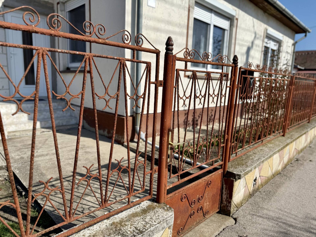 ✔︎ KÖRBEKERÍTETT az utacfronton eredeti motívumos vaskerítéssel, oldalt pedig újszerű lindab kerítéssel