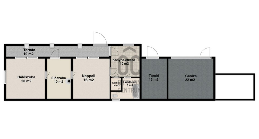 A 62 m²-es lakótér három szobával, konyhával, kamrával és fürdőszobával rendelkezik. A tornác kiváló lehetőség a pihenésre, de akár beépítve világosabb, tágasabb belső teret is kialakíthatsz vele.