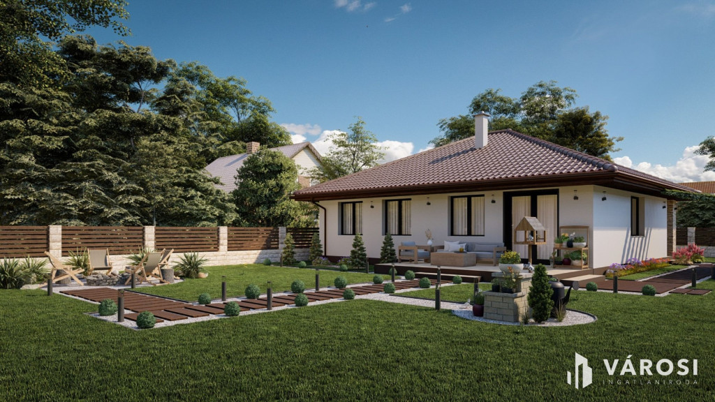 -bruttó 122nm-es családi ház (nettó 96nm-es) 3 lakószobával, fürdőszobával, külön wc-vel, háztartási helyiséggel, közlekedővel és amerikai nappalis konyhával.