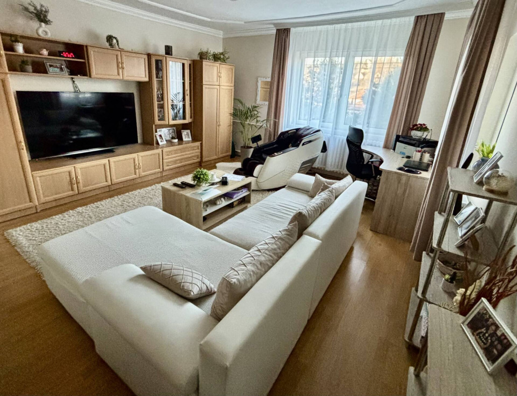 • 3 szoba (2 laminált padlós, 1 eredeti parketta)