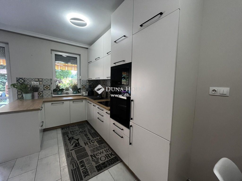 Eladó Kecskeméten nappali+3 szobás, felújított, saját kerttel, garázzsal rendelkező családi ház!Fiatalos megoldásokkal felújított és nagyon élhető otthon ahol igazán biztonságos zárt udvarban kialakított közös játszótér is található.Az udvari kapu és a garázs is elektromos, a ház előtti térkövezett részen még egy autóbeállási lehetőség is adott illetve a lakáshoz saját kertkapcsolat is tartozik. Fűtés és melegvíz gáz(cirkó) kazán biztosítja amivel kifejezetten alacsony rezsivel fenntartható az ingatlan. Nyílászárók hőszigetelt üvegezésű műanyag nyílászárók redőnnyel és szúnyoghálóval felszerelve illetve az emeleti szobákban sötétítő rolóval.Hívjon bizalommal és használja ki az idei évben felhasználható állami támogatásokat még!I.ár.: 74990000 Ft