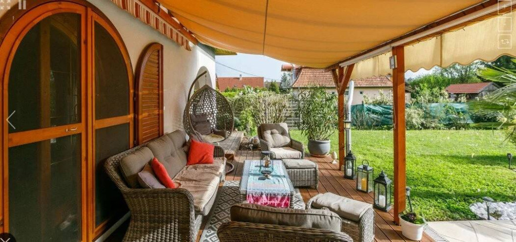 In Kehidakustány steht ein wunderschönes Einfamilienhaus zum Verkauf. Die Immobilie liegt in einer ruhigen, verkehrsfreien Straße des Ortes. Dieses traumhafte Zuhause steht auf einem 900 m² großen, super gepflegten, ebenen Grundstück. Der Vorgarten und der Hinterhof laden zum Entspannen ein, wo eine überdachte Terrasse, ein Pool und ein privater Wellnessbereich perfekte Möglichkeiten zum Relaxen oder für Treffen mit Freunden und Familie bieten. Dank der riesigen Bogenfenster ist die Immobilie in reichlich Tageslicht getaucht. Das Gebäude wurde 1997 aus Ziegeln gebaut und hat nach der nächsten größeren Renovierung im Jahr 2020 seinen aktuellen, wirklich charmanten Charakter bekommen. Das Dach ist mit Keramikziegeln gedeckt, die Garage liegt zur Straße hin. Wenn man durch den Haupteingang reinkommt, gelangt man von einem großen Vorraum aus nach rechts zu den Schlafzimmern im Untergeschoss, der schönen Küche, dem Esszimmer und einem Badezimmer mit Dusche. Im Untergeschoss befindet sich ein großzügiges Wohnzimmer mit einem Kachelofen. Von hier aus gelangt man auf die gemütliche überdachte Terrasse, von der aus es nur ein Schritt zum Pool und zum familientauglichen Whirlpool ist, wo man sich am Ende des Tages entspannen kann. Hier kann man sich in der Sauna ausruhen, ganz ungestört. Die Immobilie ist klimatisiert, in kühleren Zeiten sorgen ein Gasheizkessel mit Heizkörpern und sogar der Kachelofen für eine angenehme Temperatur. Im Zuge der Renovierung wurde die Stromversorgung der Immobilie modernisiert. Von der Straße aus sind alle Dinge des täglichen Bedarfs in wenigen Minuten erreichbar. Im Ort gibts einen Laden, eine Apotheke, eine Schule, einen Kindergarten und fast alles, was man braucht. Das Thermalbad ist nur 1100 Meter entfernt. Das Zala Springs Golf Resort ist 2,5 Kilometer entfernt. Hévíz ist 15 bis 20 Autominuten entfernt. Es gibt jede Menge Ausflugsmöglichkeiten. Ich würde dieses wunderschöne Haus Familien empfehlen, die Ruhe und ein beschauliches Leben suchen, aber auch als tolle Investition.