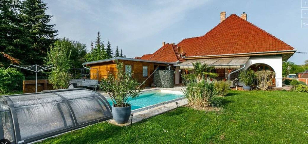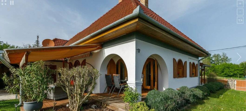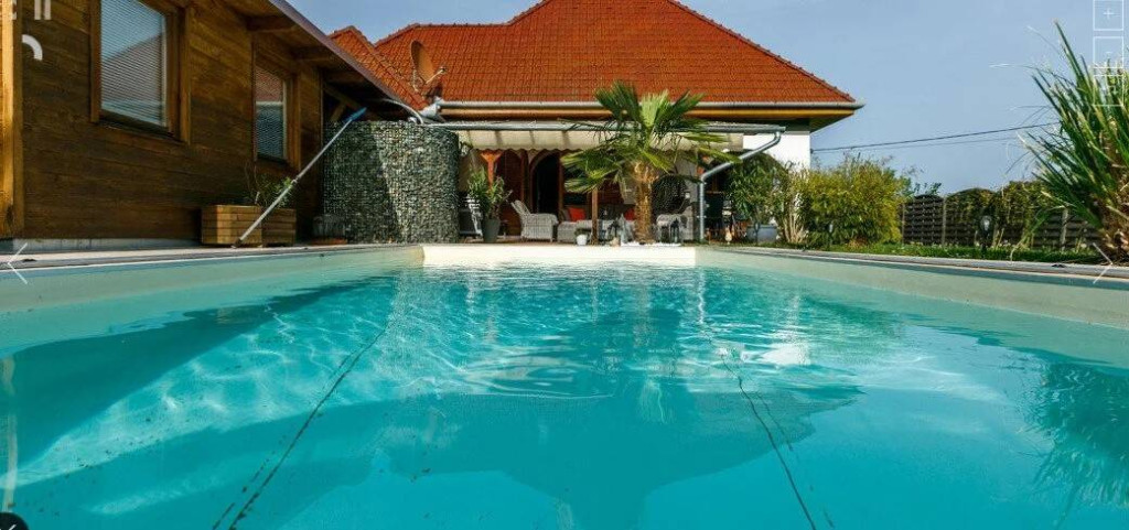 A beautiful family home is now for sale in Kehidakustány. The property is located on one of the towns quiet, traffic-free streets. This beautiful home is set on a 900 m² plot of carefully maintained land. The front and back gardens are perfect for relaxing, with a covered terrace, swimming pool and private wellness area offering the ideal setting for unwinding or entertaining friends and family. The property is bathed in natural light thanks to its huge arched windows. The building was constructed in 1997 from brick and, following a major renovation, achieved its current charming character in 2020. The roof is covered with ceramic tiles, and the garage is located on the street front. Entering through the main entrance, we reach the bedrooms on the lower level, the beautiful kitchen, the dining room, and a bathroom with a shower, turning right from the large entrance hall. The lower level also features a lavish living room with a tiled stove. From here, we can access the comfortable covered back terrace, which is just a step away from the pool and family-sized jacuzzi, where we can relax at the end of the day. Here, we can sit in the sauna and relax a little, completely undisturbed. The property is air-conditioned, and in cooler weather, a gas boiler with radiators and even the tiled stove help to maintain a pleasant temperature. During the renovation, the propertys electricity supply was upgraded. Everything you need for everyday life is just a few minutes walk from the street. The town has a shop, pharmacy, school, kindergarten, and almost everything else you could need. The spa is only 1,100 meters away. The Zala Springs Golf Resort is 2.5 kilometers away. Hévíz is a 15-20 minute drive away. There are plenty of opportunities for excursions. I would recommend this beautiful home to families looking for peace and quiet, as well as an excellent investment opportunity.