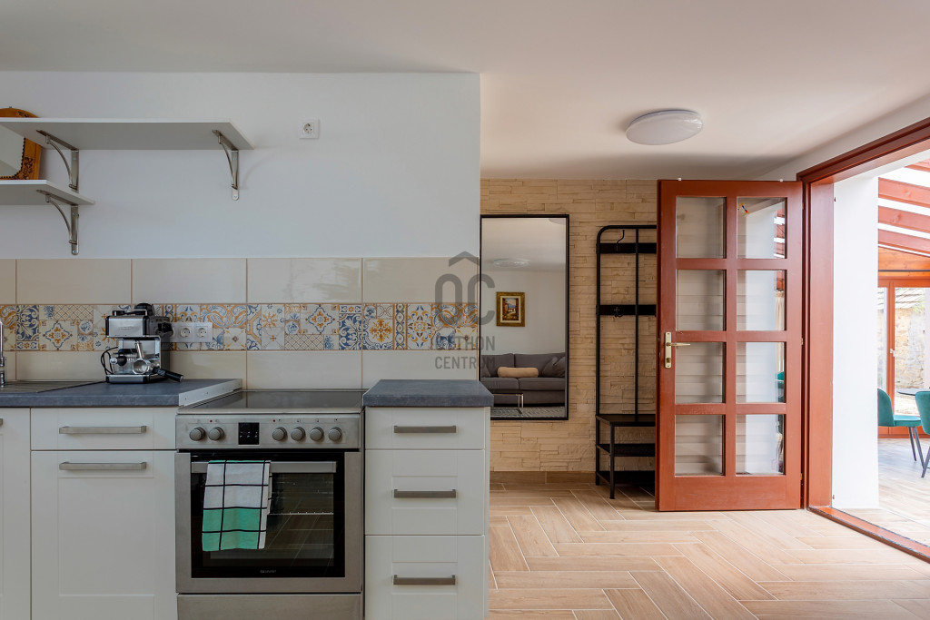 *Első lakórész: gépesített, tágas konyha-étkező, 1 hálószoba, fürdőszoba, külön mosókonyha/tároló