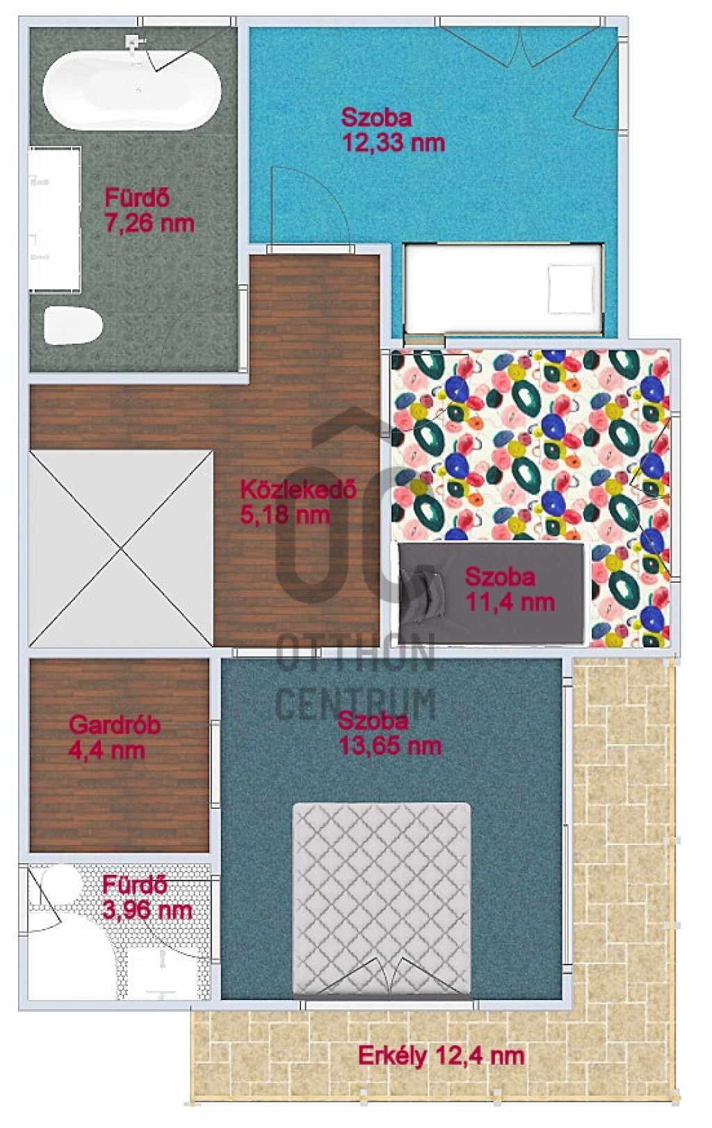 A 7,74 négyzetméteres terasz és a 12,4 négyzetméteres erkély pedig remek helyszínt biztosít a családi összejövetelekhez vagy a csendes pihenéshez a nap végén.