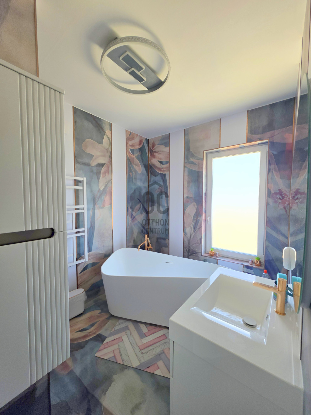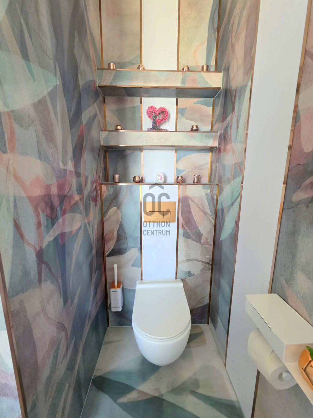 A fürdőkben és a mosókonyhában érintés mentes szemetes és szappanadagoló került beépítésre. Továbbá a fürdőszobákban TRES típusú felsőkategóriás csapok, zuhany került beépítésre, bronz és rosegold színekben.